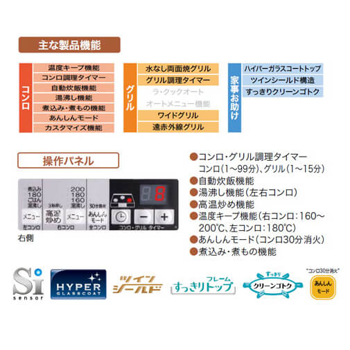 ・温度キープ機能:160〜200度(5段階)右コンロ 180度左コンロ